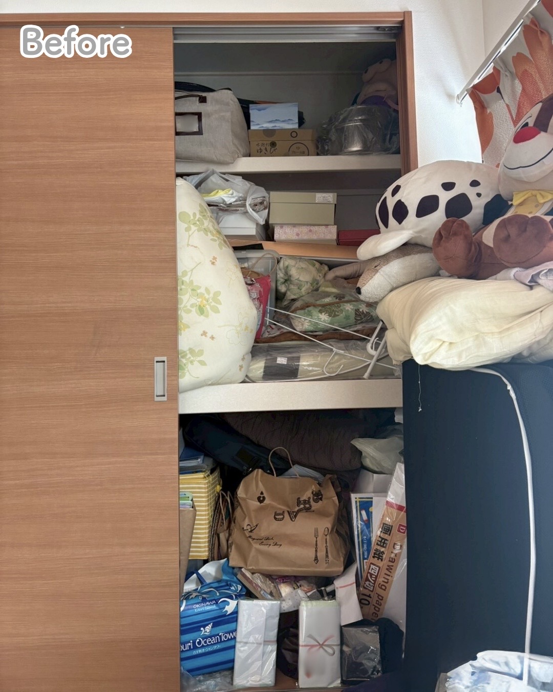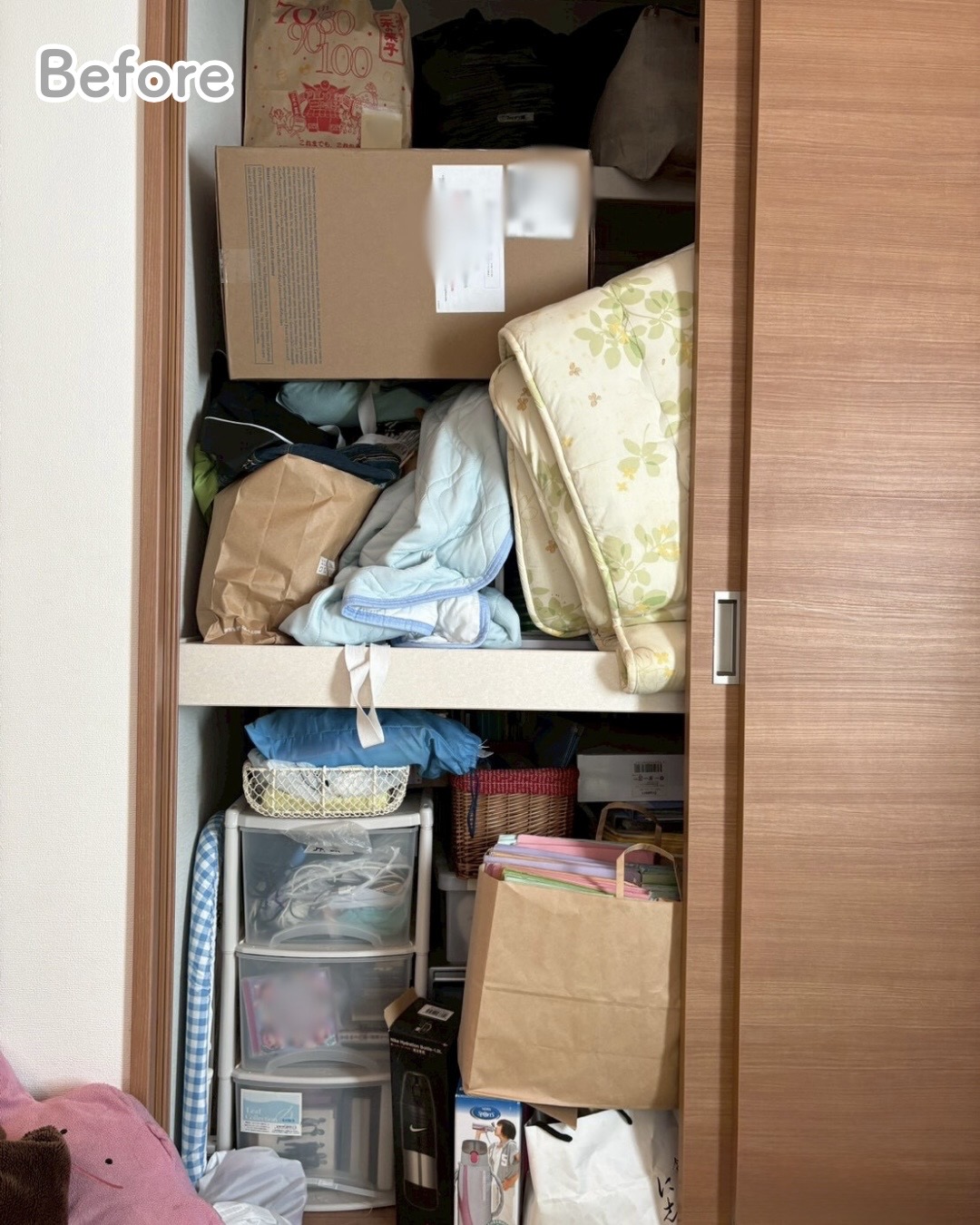 押し入れを使うにあたり、ご依頼主様(奥様)は、全ての物と向き合い、もう使わないと判断された物はどんどん処分されました。