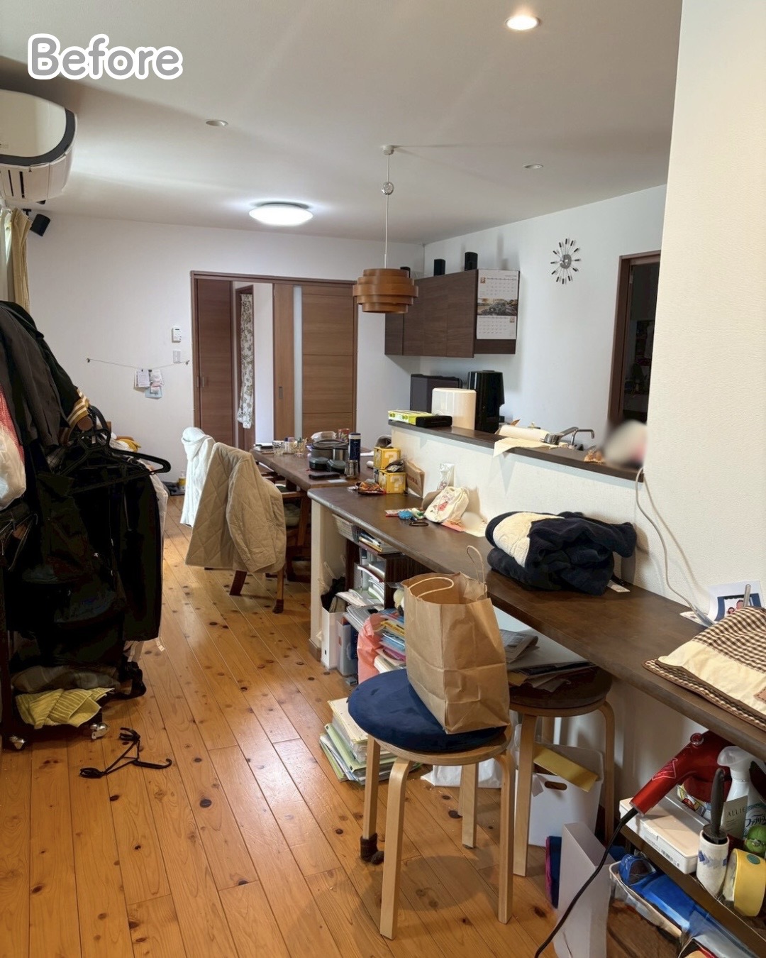 ご依頼主がそのお家のお母さんの場合、旦那様やお子様が、上着や鞄を帰宅後その辺にポンと置きっぱなしにしてしまい、見かねたお母さんが家族の物を片づけるという構図が出来上がってしまい、ホトホト困ってらっしゃるパターンが多いです。