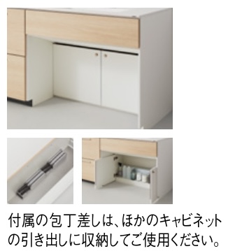 キッチンメーカーさんのカップボードには引き出し下をオープンにしたユニットが