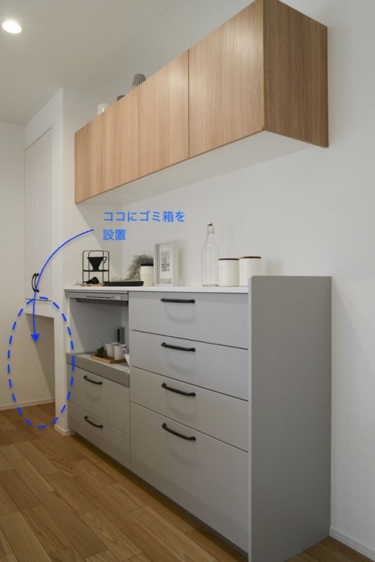 一つ注意点とすればカップボードをゴミ箱スペースとすることで