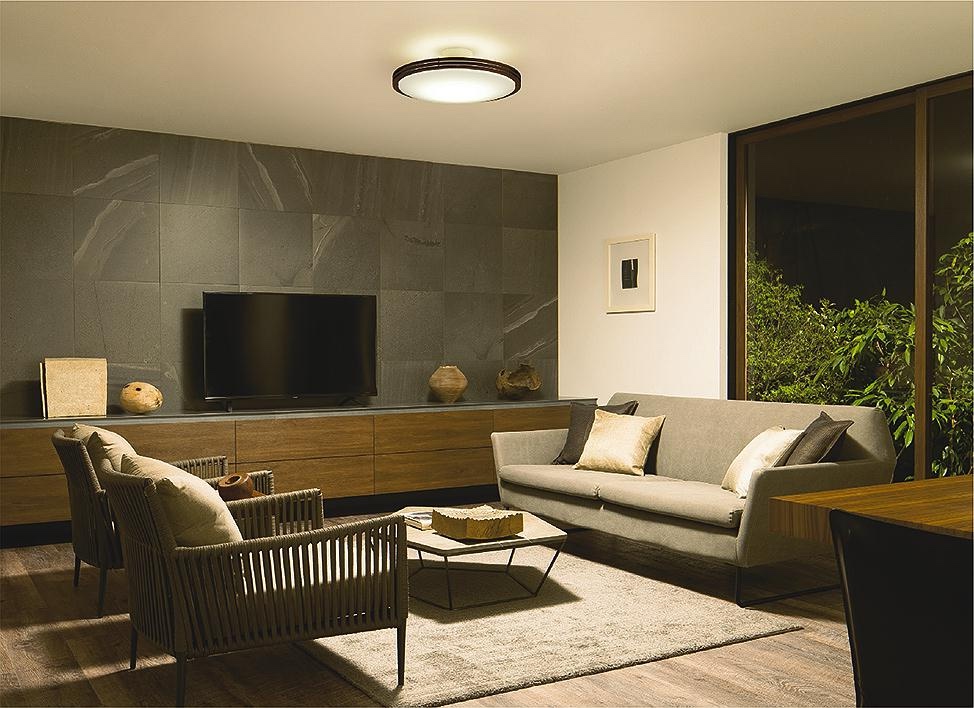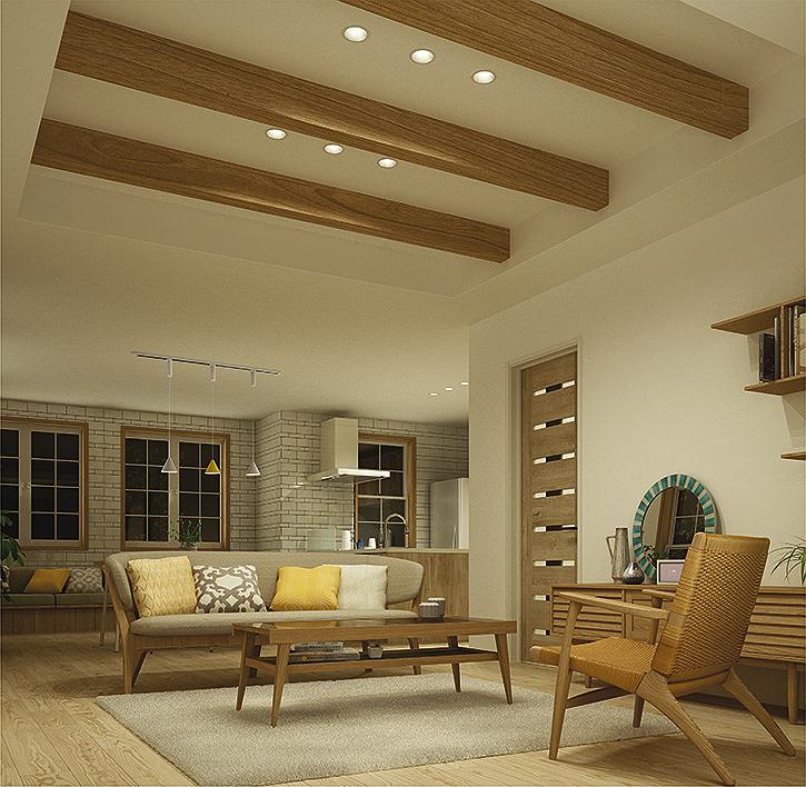 家族が集まり、読書やテレビ、くつろぎなど多目的に使う場所なので明るさを調整できる調光タイプの照明がおすすめです。それにより、使用目的によって雰囲気を変える事も可能です。