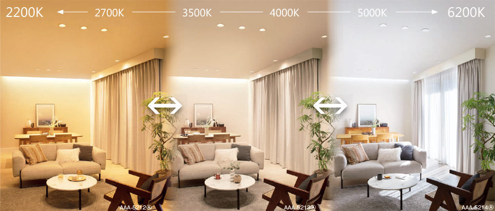 • 電球色:やわらかい暖色系の光。リラックスしたいリビングや寝室に向いています。
