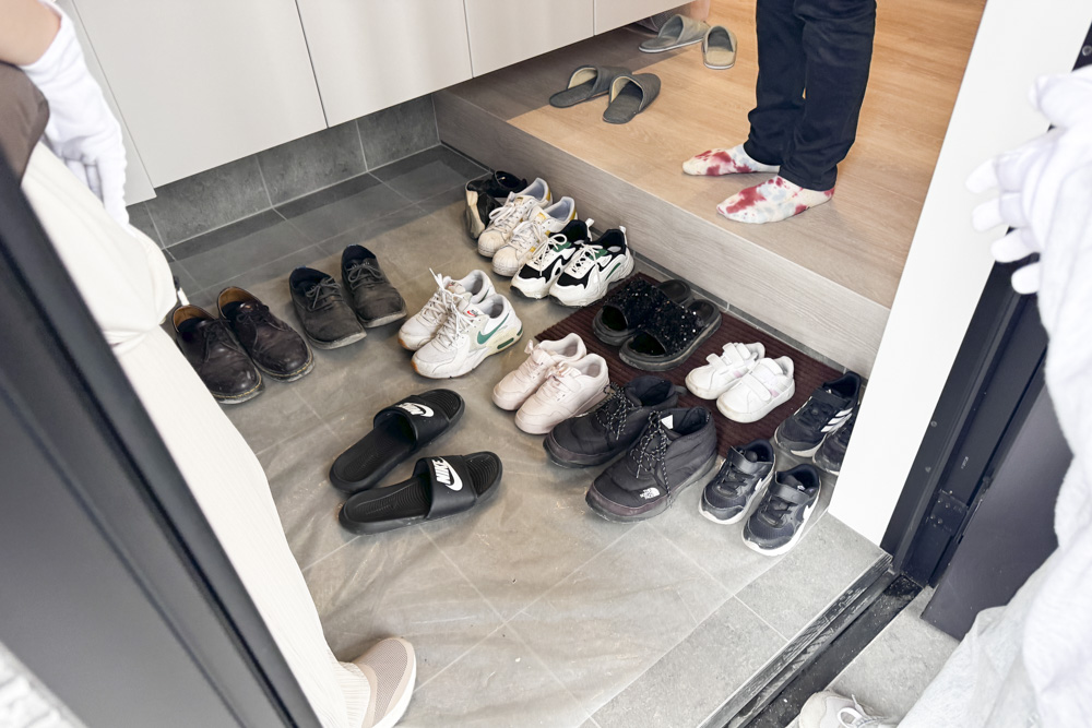 グレージュの中にさりげなく取り入れた木目が、自然な温もりを添え洗練された佇まいを演出します。