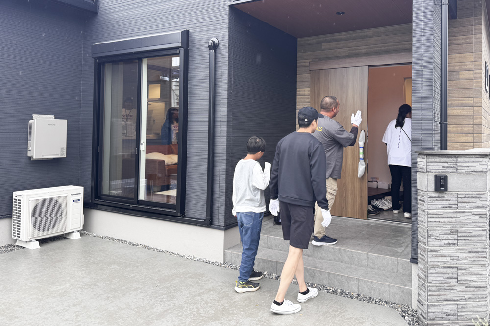 落ち着いたブラックの外観に木の温もりが調和した平屋の佇まいが、帰る度に心を穏やかにします。