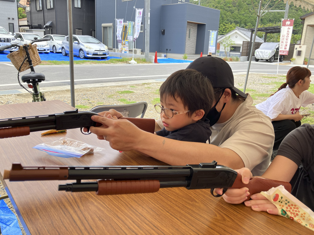| 小さなお子様でも楽しめます◎ | 初の射的コーナーは大盛り上がり |