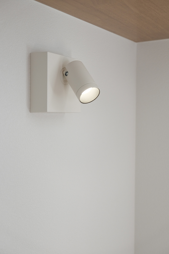 (カウンター・固定棚:DAIKEN 集成材カウンター ライトオーカー/スポットライト:KOIZUMI AB 53958/室内窓:LIXIL 室内用デコ窓)