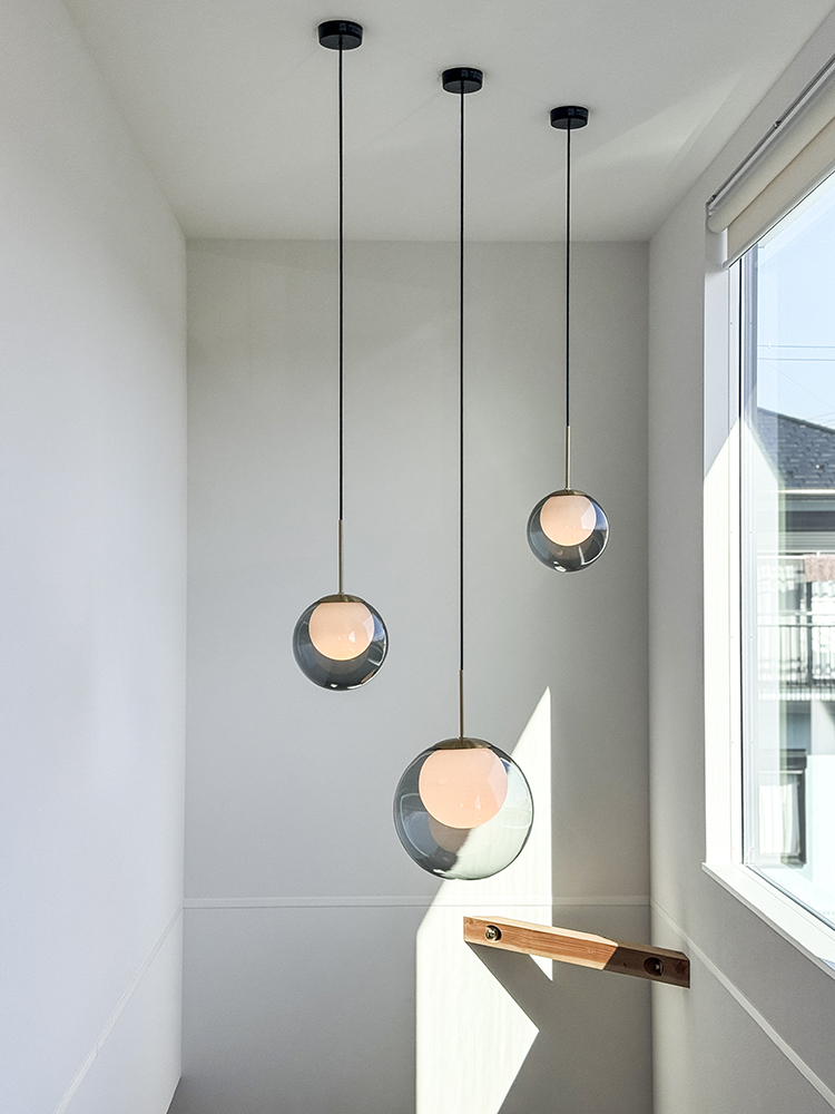 (ペンダントライト:DAIKO DPN-42235Y・DPN-42234Y/2階室内窓:LIXIL デコ窓) -