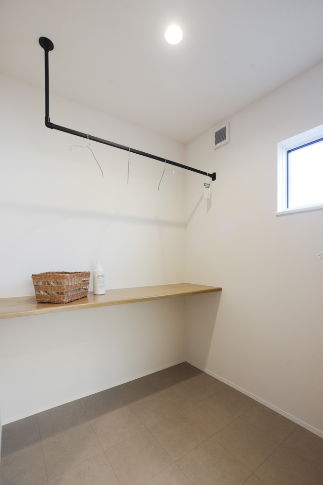 スタディスペース寝室の一角に設けたスタディスペース。おしゃれなデコ窓はLDKの吹抜けにつながり、家族の気配を感じながら作業や読書ができる空間です。限られたスペースを有効活用した、居心地の良いワークスペースに仕上がりました。
