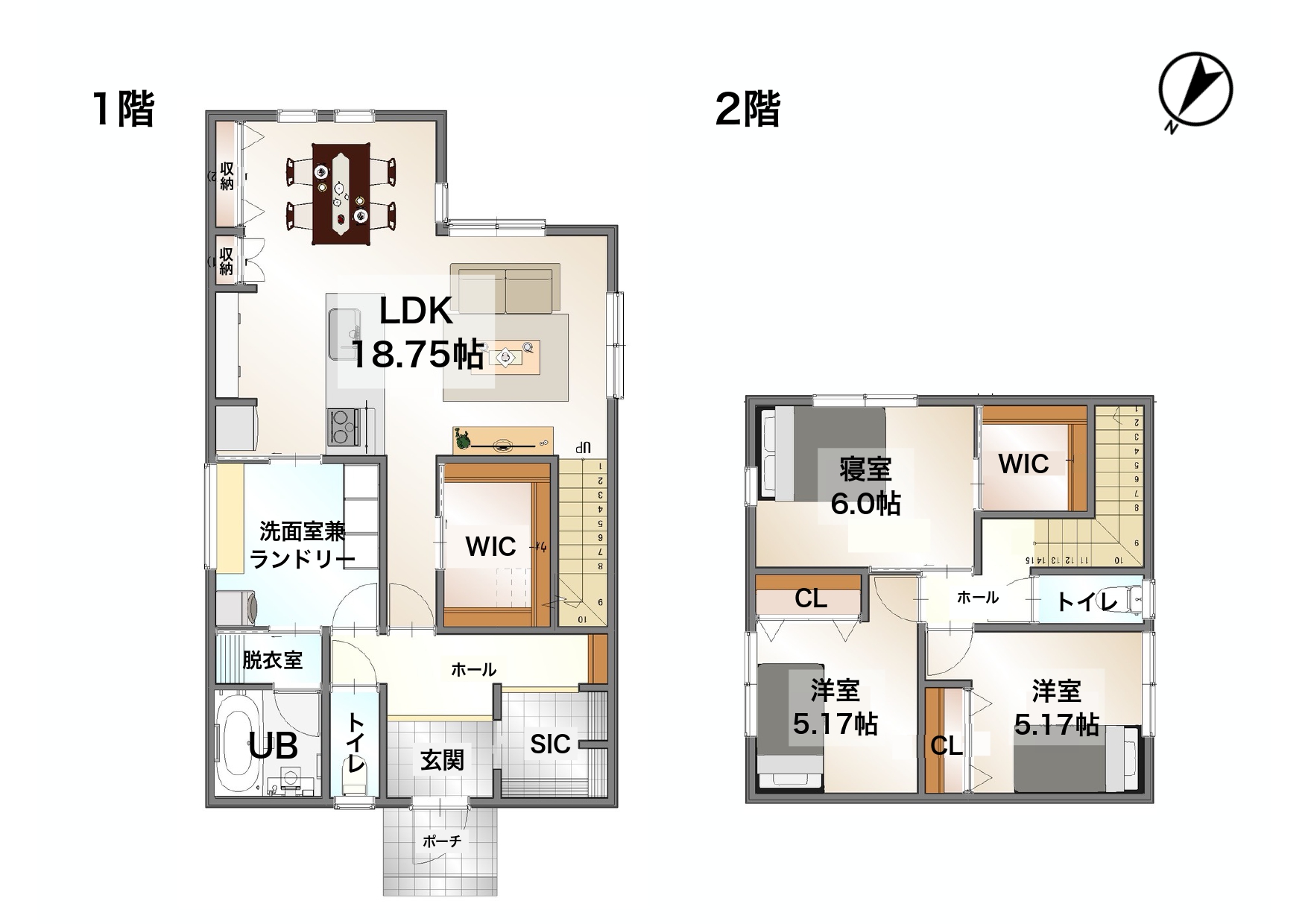 グレージュとホワイト、そしてオーク。