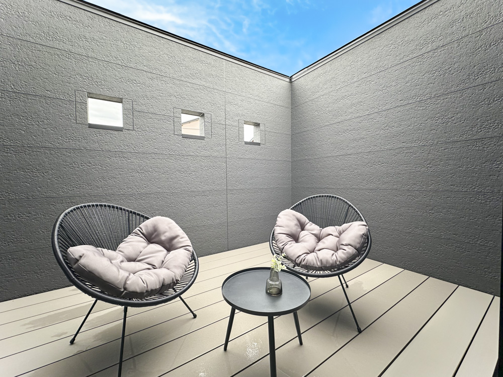 -スマートに寛ぐ。プライベートロジアのあるお家-