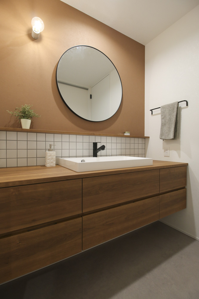 グレージュの中にさりげなく取り入れた木目が