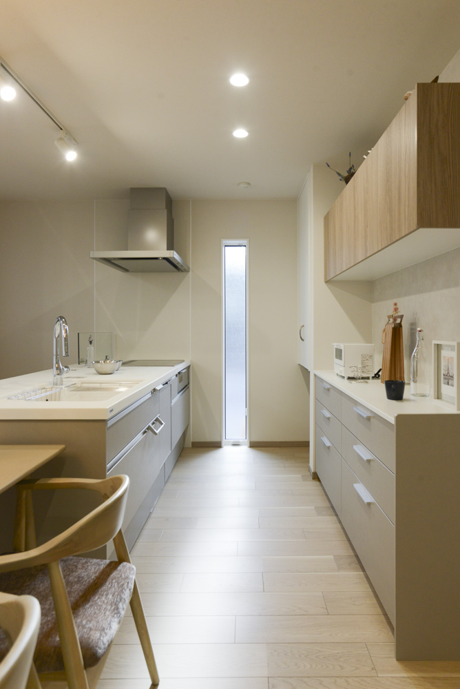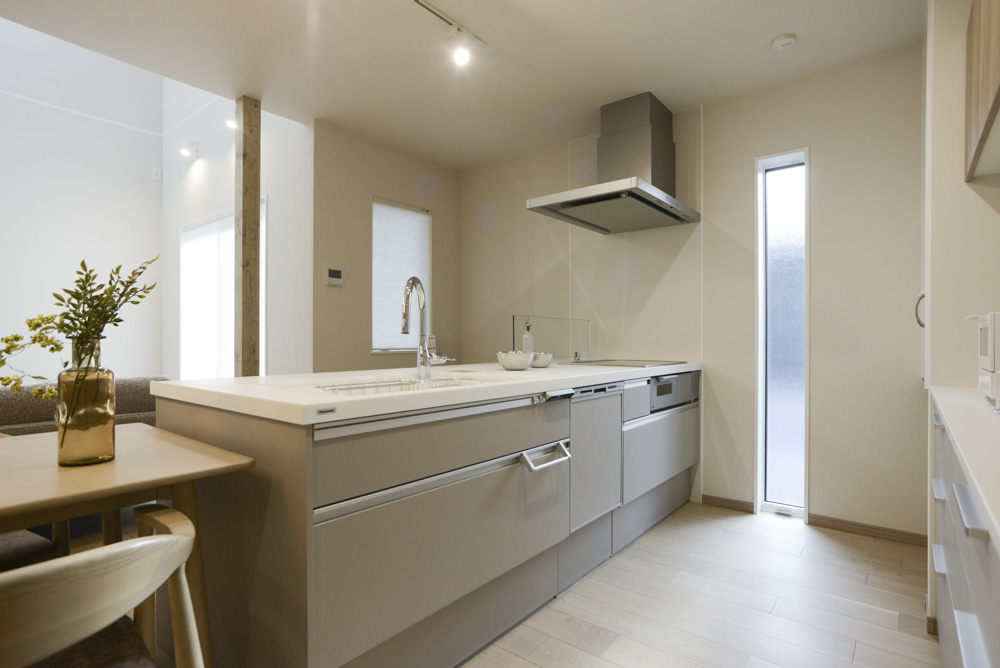 (キッチン:Panasonic Sクラス 扉:パールグレー柄 取っ手:ライン取っ手シルバー) -