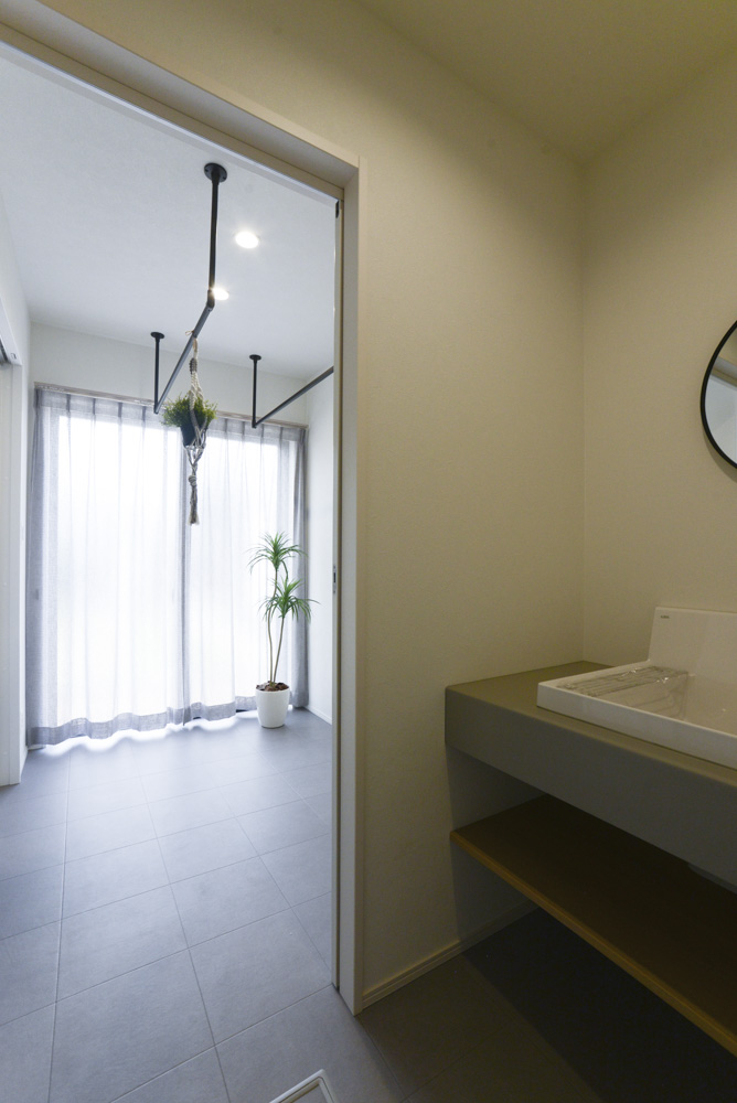 急な雨でもすぐに衣類を取り込み、ランドリールームで干せる間取りになっています。