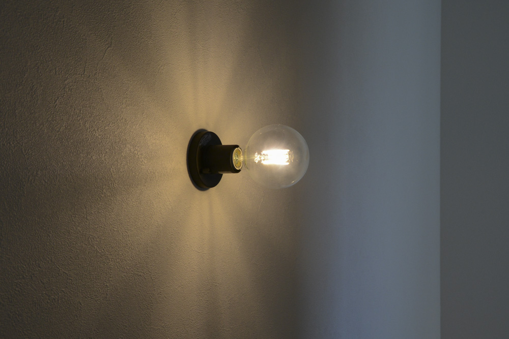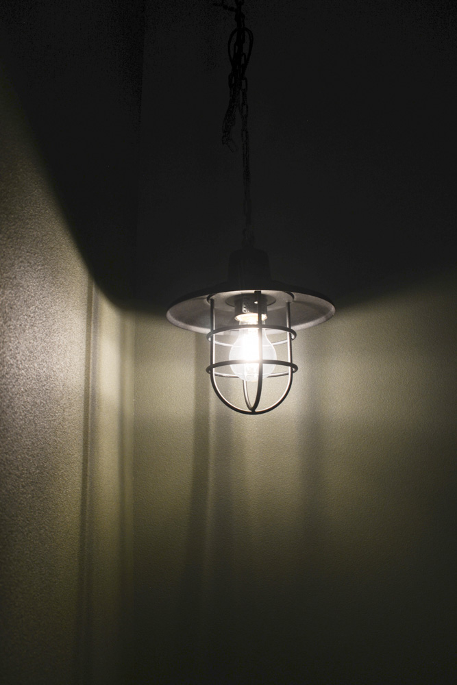 1階トイレスペース壁全面グリーンのクロスで仕上げ、ペンダントライトがほんのり灯る、おしゃれなトイレスペース。
