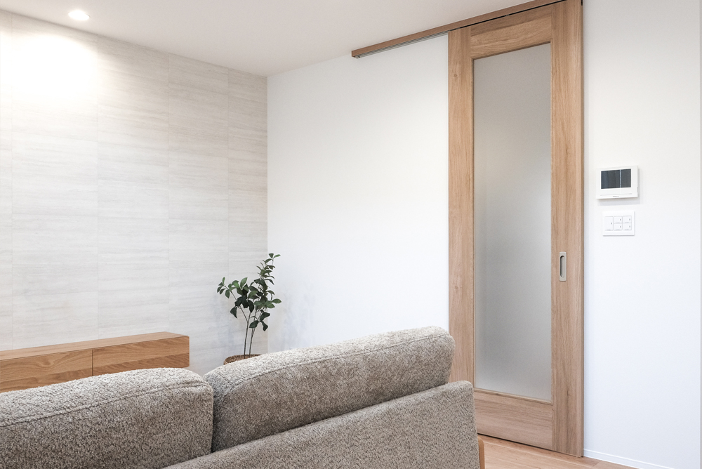 (床:DAIKEN トリニティ オーク柄/建具:DAIKEN イエリア 21デザイン ライトオーカー/ベースクロス:SP2531/アクセントクロス:FE76616) -