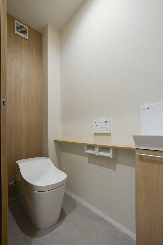 1階トイレ(クッションフロア:サンゲツ HM17002/ベースクロス:サンゲツ SP2597/アクセントクロス:サンゲツ SP2568)