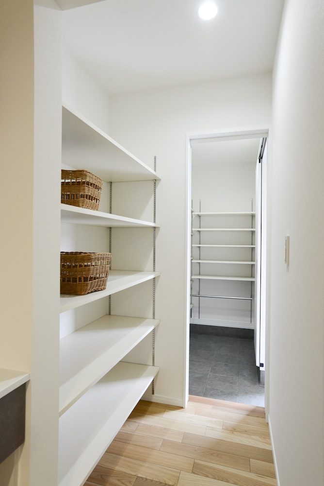 玄関からパントリーへと直結するスムーズな動線。