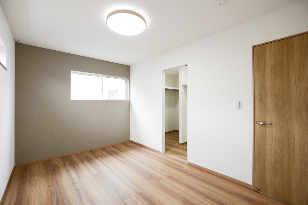 2階主寝室 (床:床:DAIKEN Myフロア エルム柄ブラウン/建具:DAIKEN hapia ライトオーカー/メインクロス:サンゲツSP2531/アクセント壁:サンゲツFE76062)