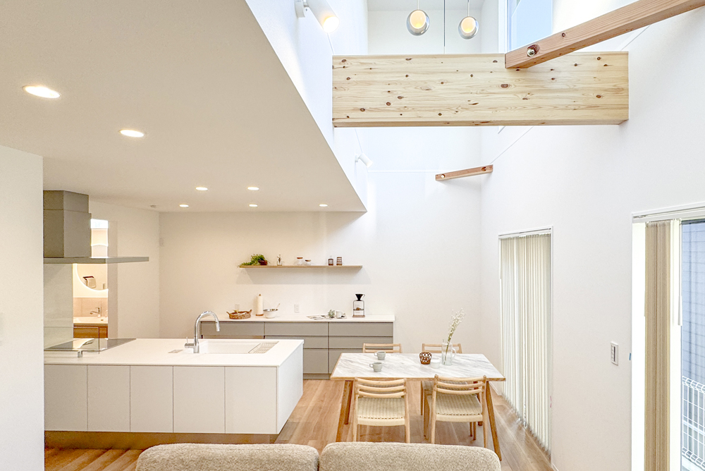 ベージュやグレー、穏やかなニュアンスカラーを使った内装は穏やかで上品。木製の家具やコットン・ウール・リネンなどのナチュラル素材が似合う癒しの空間です。