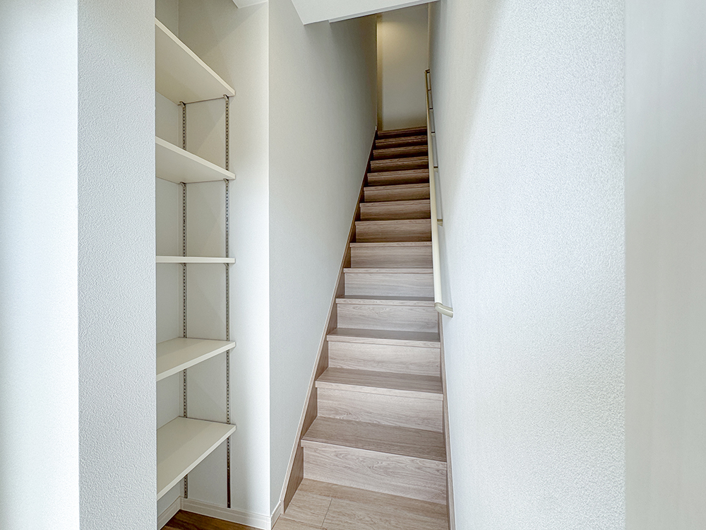 101号室 キッチン柔らかなトーンで統一されたキッチン。リビングまで視線が抜けるオープンな設計が、家族との会話を弾ませます。カップボードも備え、高い収納力と使い勝手の良さを両立したキッチンスペースとなっています。