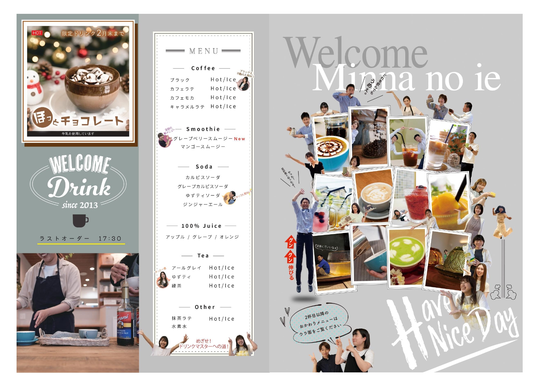 (掲載しているメニュー表は八日市ショールームのドリンクです)