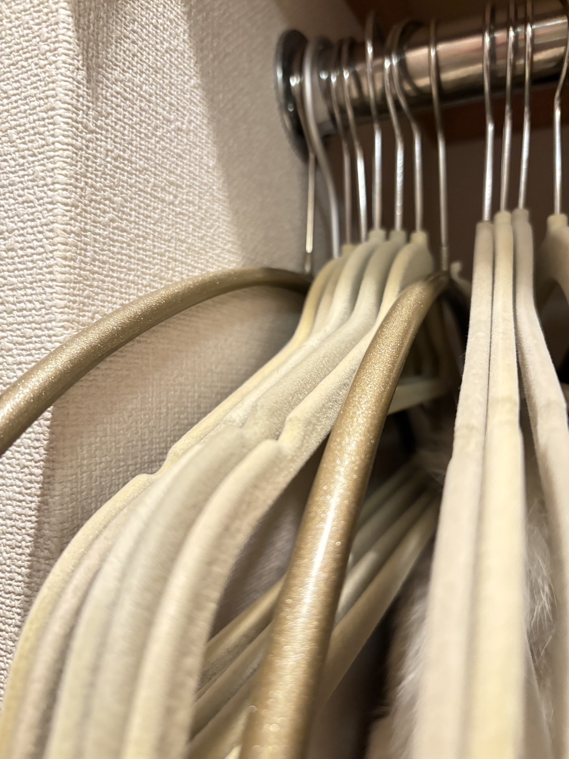間引いたあとのハンガーバーは、ゆったりとアウターがかかっていて、まるでショップのようです。