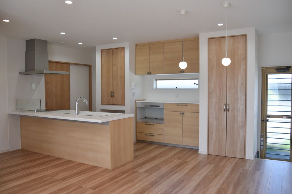 LDKLDKは柔らかい木目柄で床や建具をまとめられました。キッチン周りは収納面に特化した仕様になっています。
