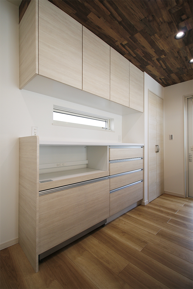 (フロア:DAIKEN MYフロア ラスティックペカン柄 / ドア:DAIKEN ハピア ティーブラウン / クロス:リリカラ LB9132)