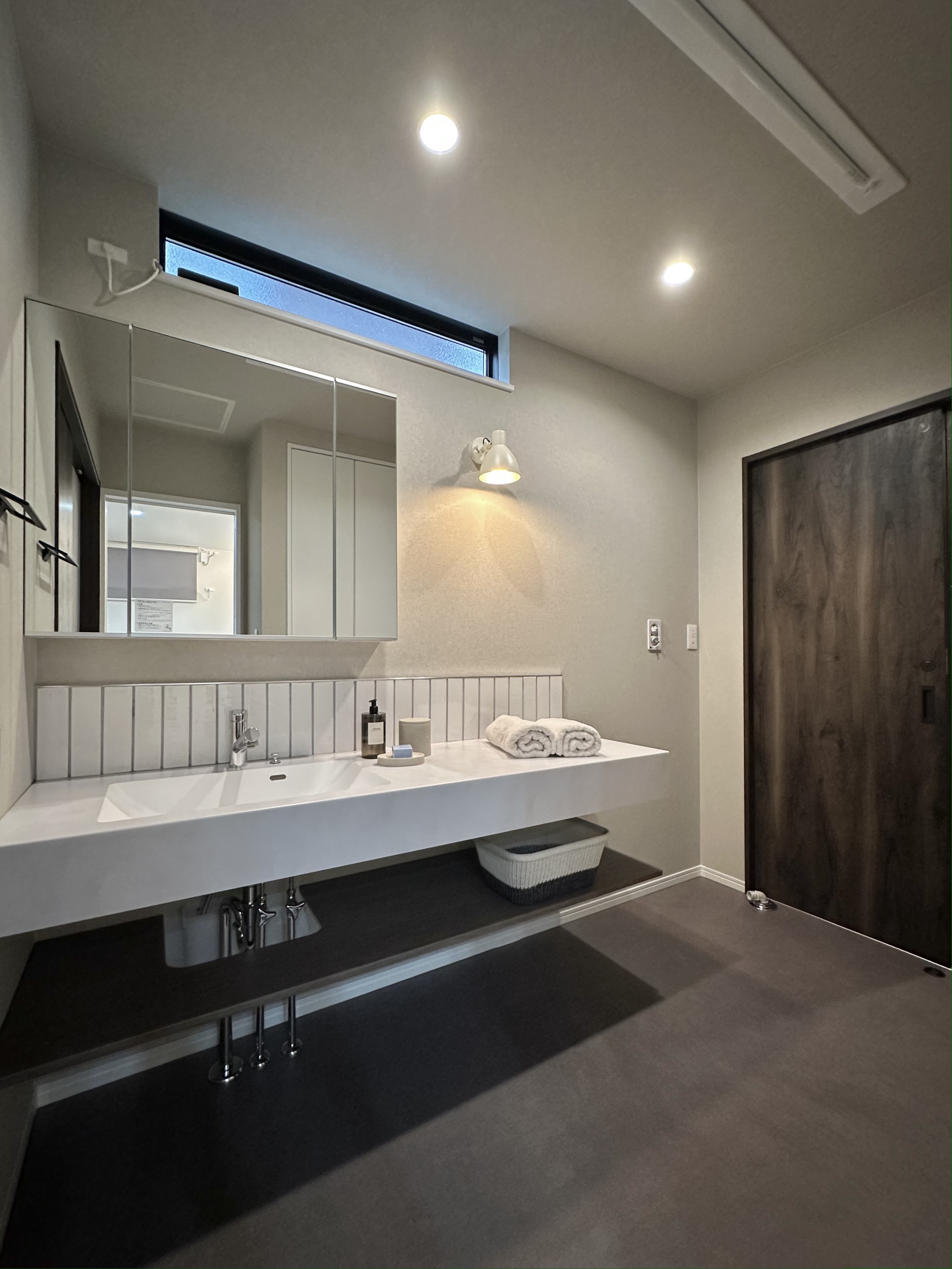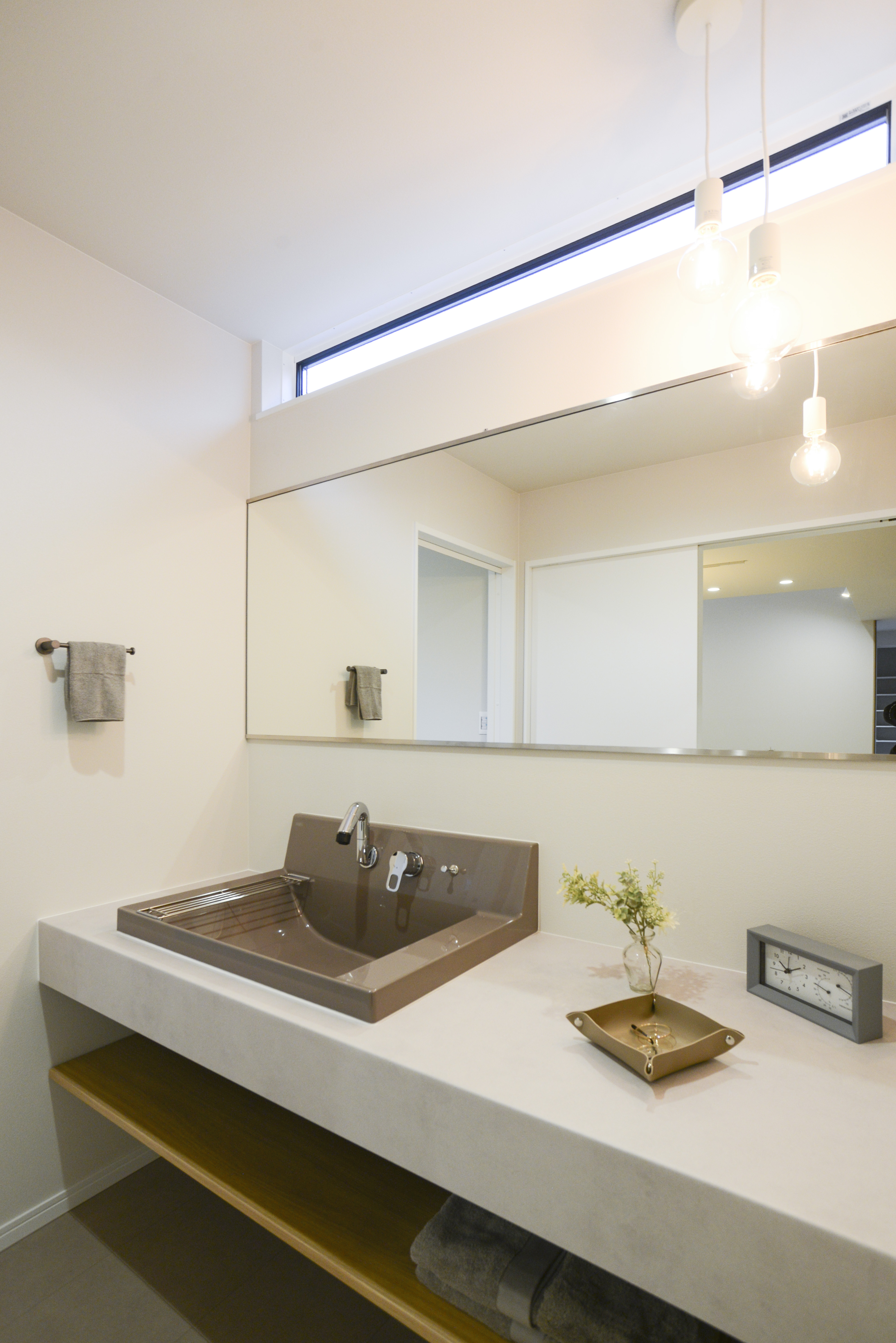 グレージュの中にさりげなく取り入れた木目が