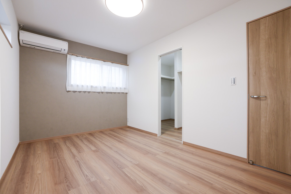 2階主寝室 (床:床:DAIKEN Myフロア エルム柄ブラウン/建具:DAIKEN hapia ライトオーカー/メインクロス:サンゲツSP2531/アクセント壁:サンゲツFE76062)
