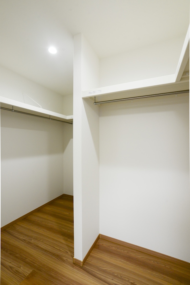 LDK・外のデッキ・クローゼットへ最短で繋がる、家事効率を極めた動線設計です。 「洗う・干す・畳む」がこの場で完結し、重い洗濯物を持って移動する手間を大幅に省きます。 室内干しバーや作業カウンターを備え、毎日の洗濯をシンプルかつ心地よいものに変えてくれます。