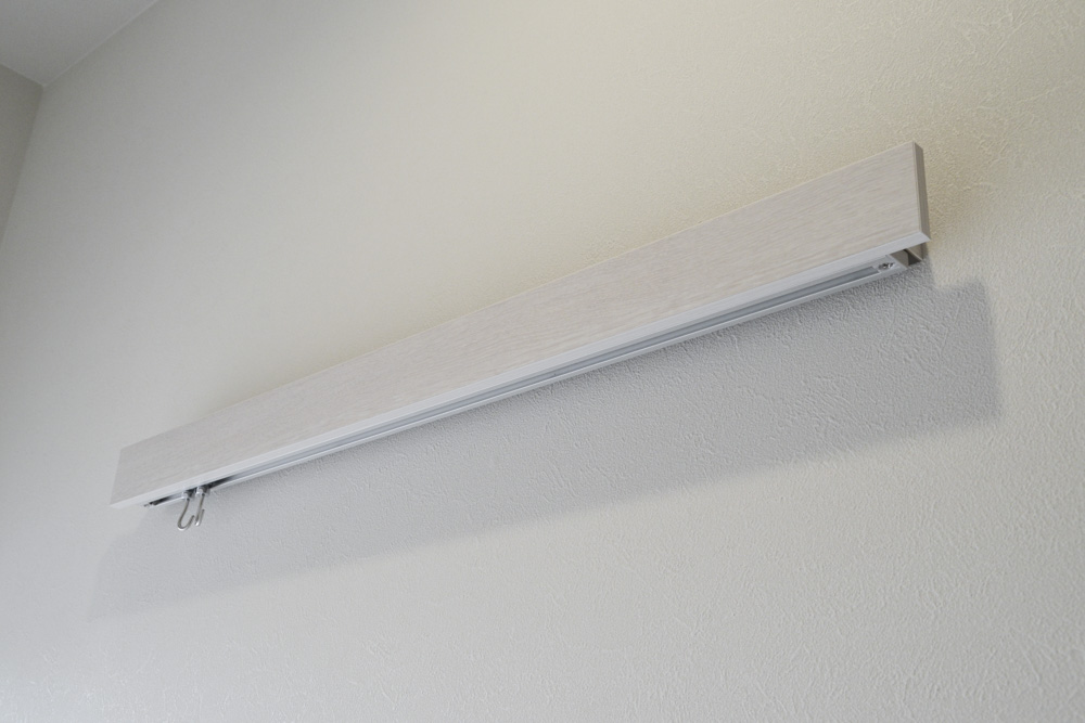 201号室 洋室(ナチュラルスタイル)寝室として使用できる3帖ほどの空間には、クローゼットや壁掛けのハンガーラックを設けています。