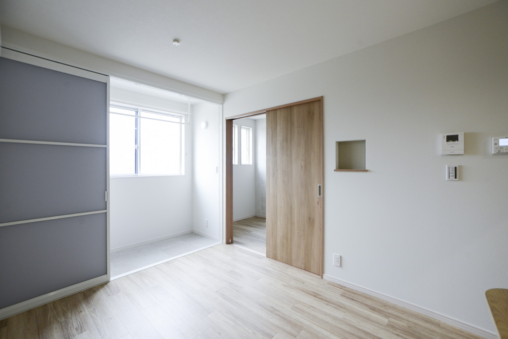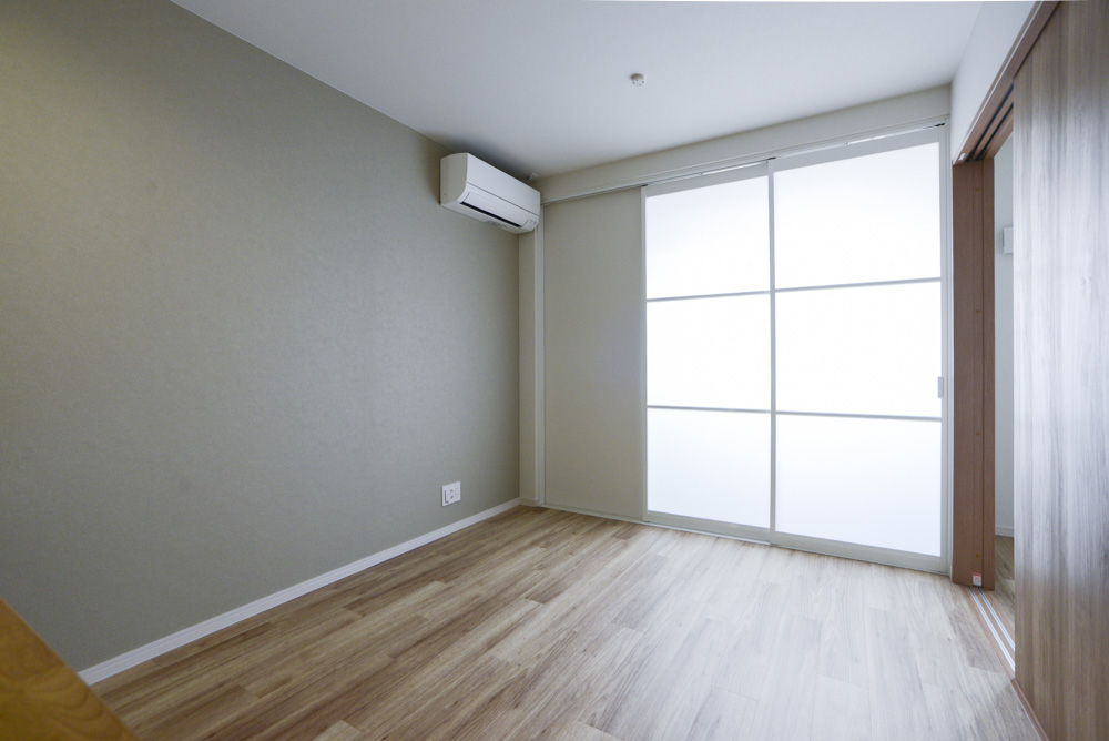106号室 洋室(モダンスタイル)たっぷり収納できるクローゼットが魅力的。扉を開け放てばLDKと一続きの空間になります。