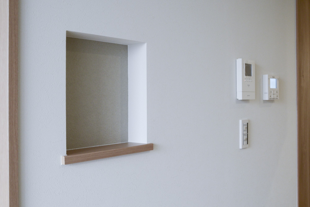 201号室 玄関ホール(ナチュラルスタイル)2階のお部屋へと続く玄関ホール。可動棚を設置したオープン収納を設けています。