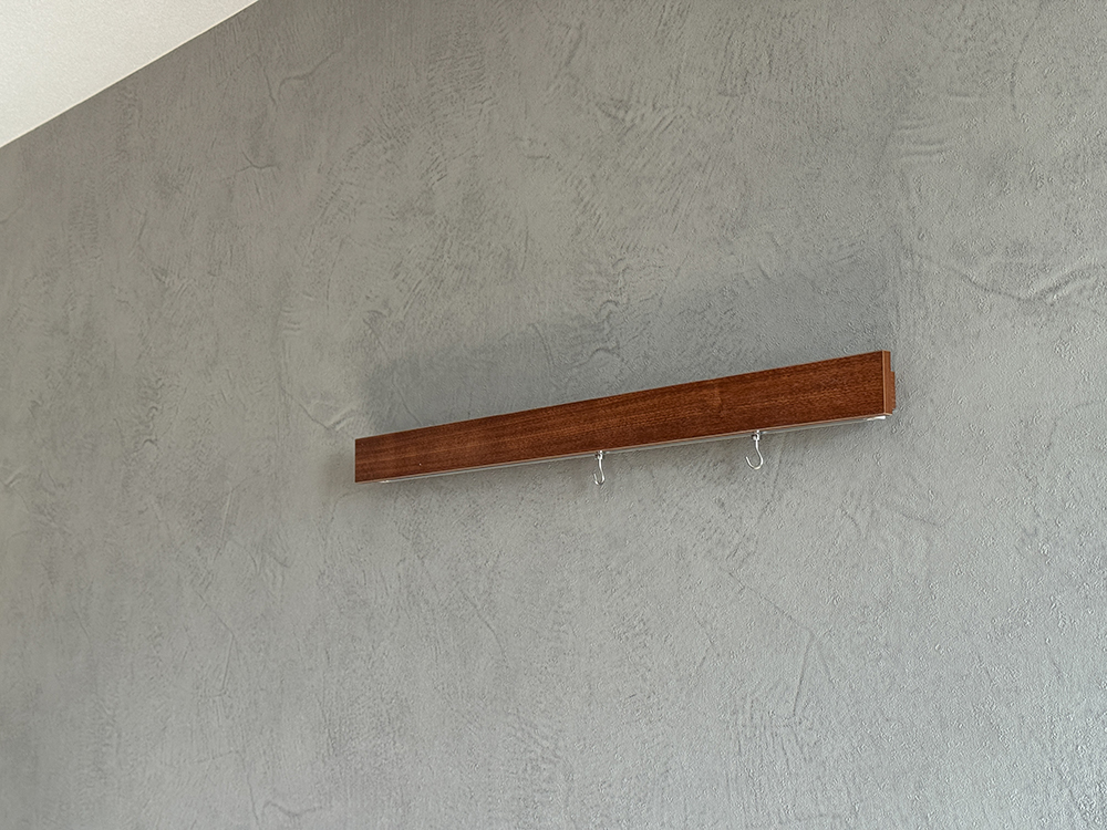(床:Bulls ぴったりフロアー TAR-612W/片引戸・収納建具:DAIKEN ダルブラウン/壁掛けハンガーラック:Bulls ナット柄)