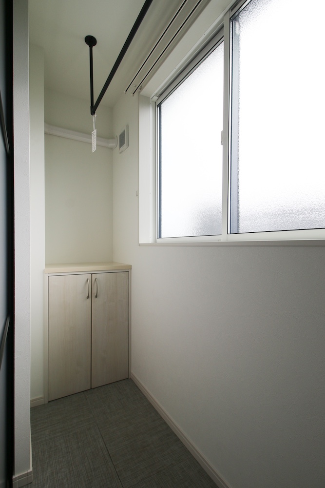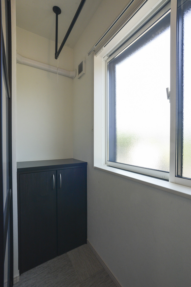 203号室:サンルーム(サンルームフロア:Bulls ReFaceフロアーTile P-002/下部収納:DAIKEN ハピア ネオホワイト/ハンギングバー:Bulls ブラック)