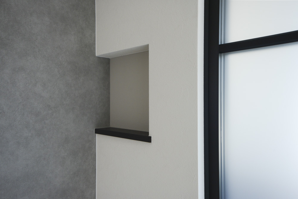 101号室:ニッチ(アクセントクロス:サンゲツ SP9730(廃盤)/下枠:オフブラック)