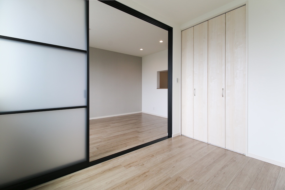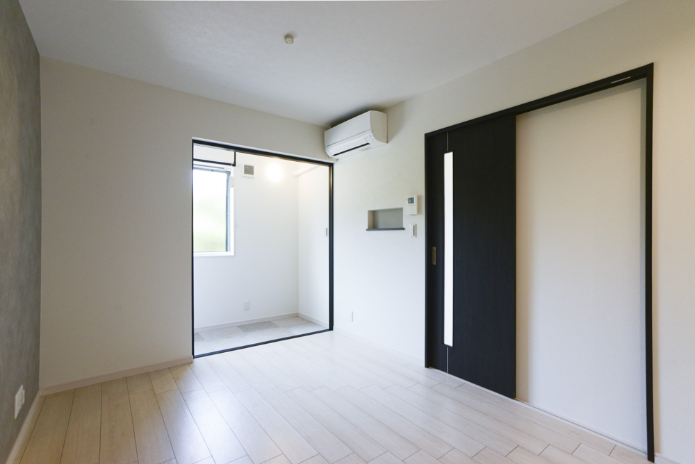 209号室:洋室(洋室ドア:三協アルミ アミス/枠色:ブラック/樹脂パネル:クリアマット/収納建具:DAIKEN ハピア ネオホワイト)
