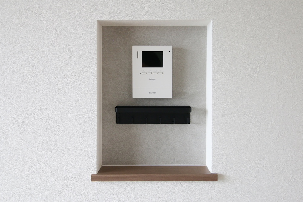 203号室:リモコンニッチ(アクセントクロス:サンゲツ FE76024/下枠:トープグレー/キーフック:ブラック)