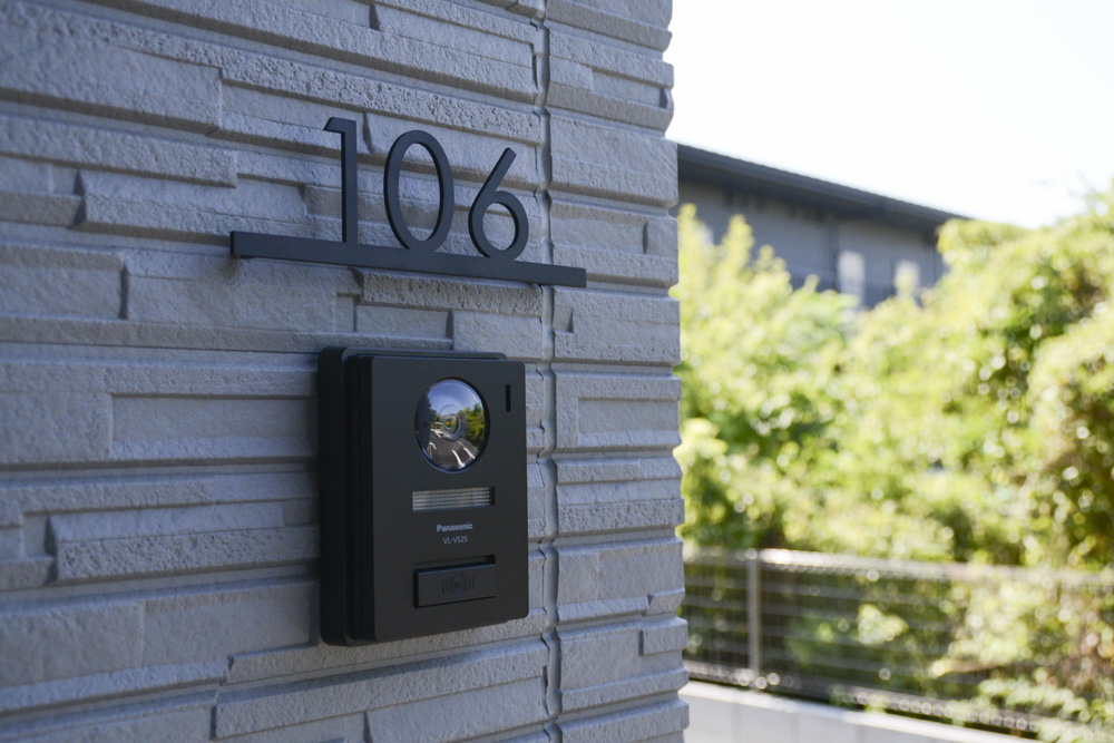 ブラックの落ち着いた外壁と、玄関周りのホワイトのコントラストが印象的な外観。どの角度から見ても美しく、街並みに上質な印象を与える外観です。(101〜203メイン外壁:KMEW インペリアル QFチャコールチタンブラック/アクセント外壁:KMEW セフィロウッド18 フェイントチタンベージュ/105〜209メイン外壁:インペリアル QFミッドチタングレー/105〜209アクセント外壁:セフィロウッド18 フェイントチタンホワイト/屋根:軽量瓦 ROOGA 鉄平 ブラック/破風板:神島化学工業 チャコールブラック/軒天井:神島化学工業 チャコールブラック/サッシ:LIXIL サーモスⅡH ブラック)