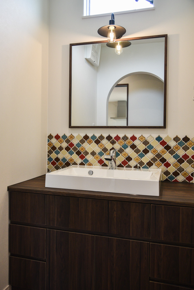 洗面のタイルもすっごく可愛くて、自分で並べ方考えたから自慢の場所で、朝の準備でもお気に入りの洗面に立つと朝からテンションが上がります!