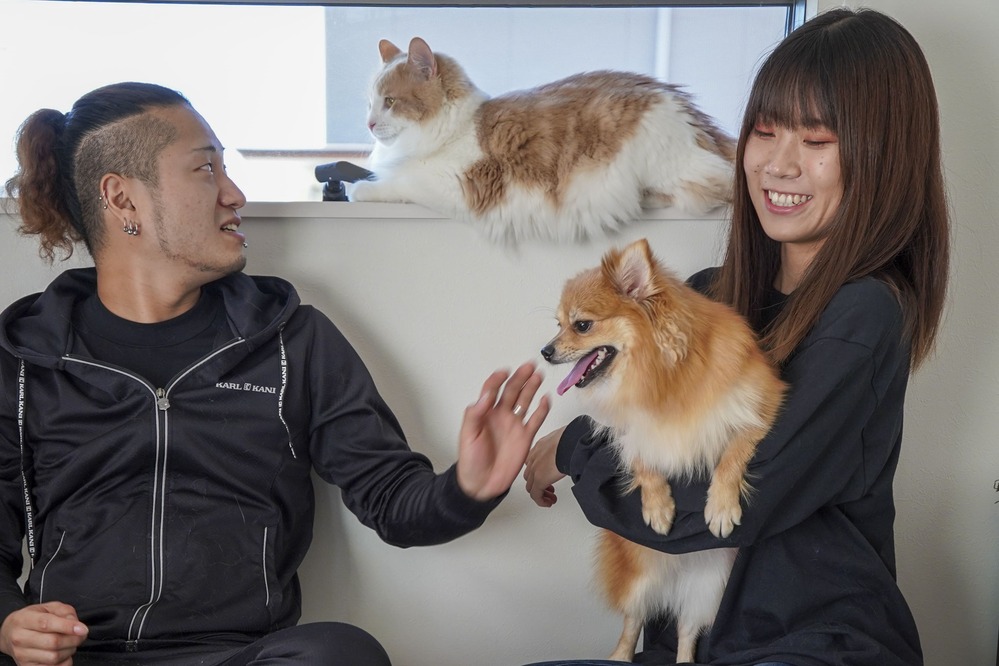 猫が大人な対応をしてくれるので、喧嘩もしなくてとても仲良しです。